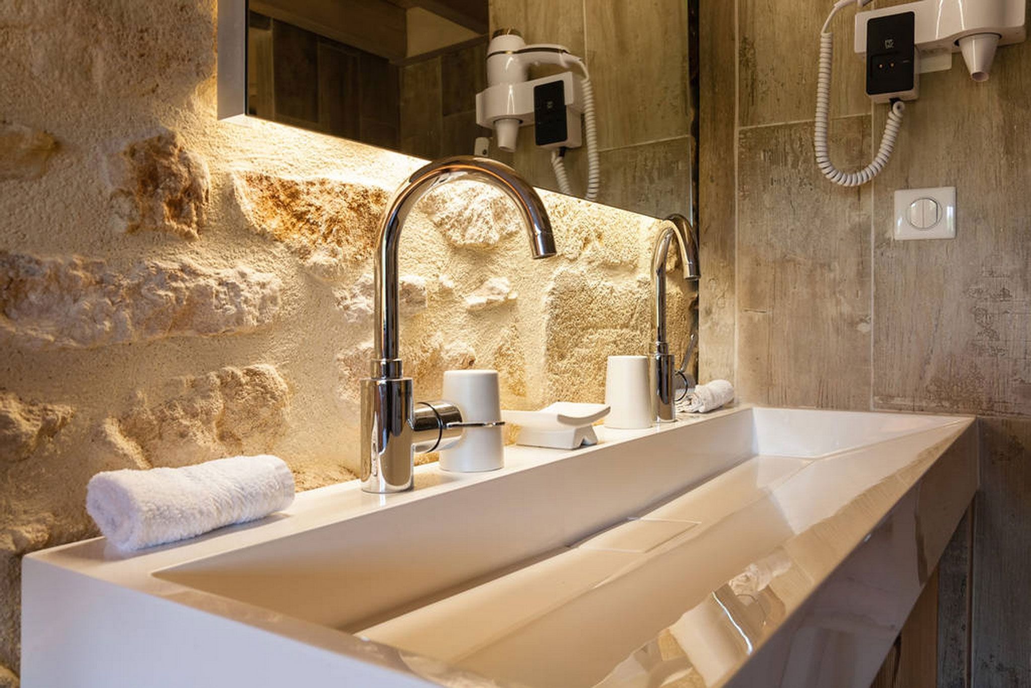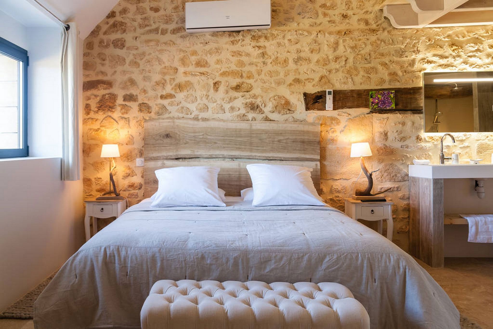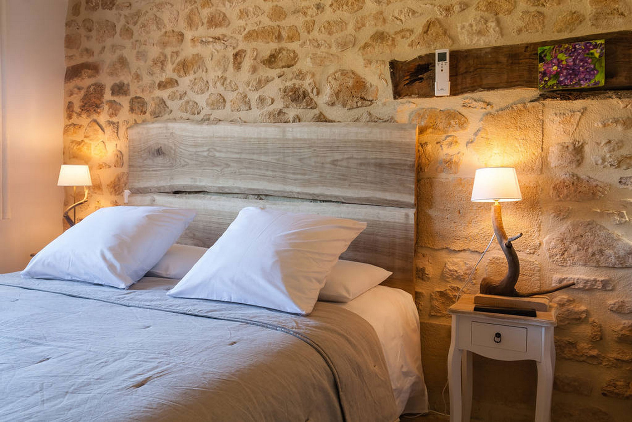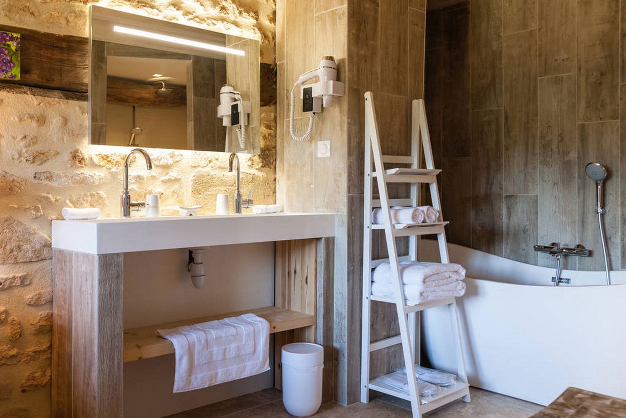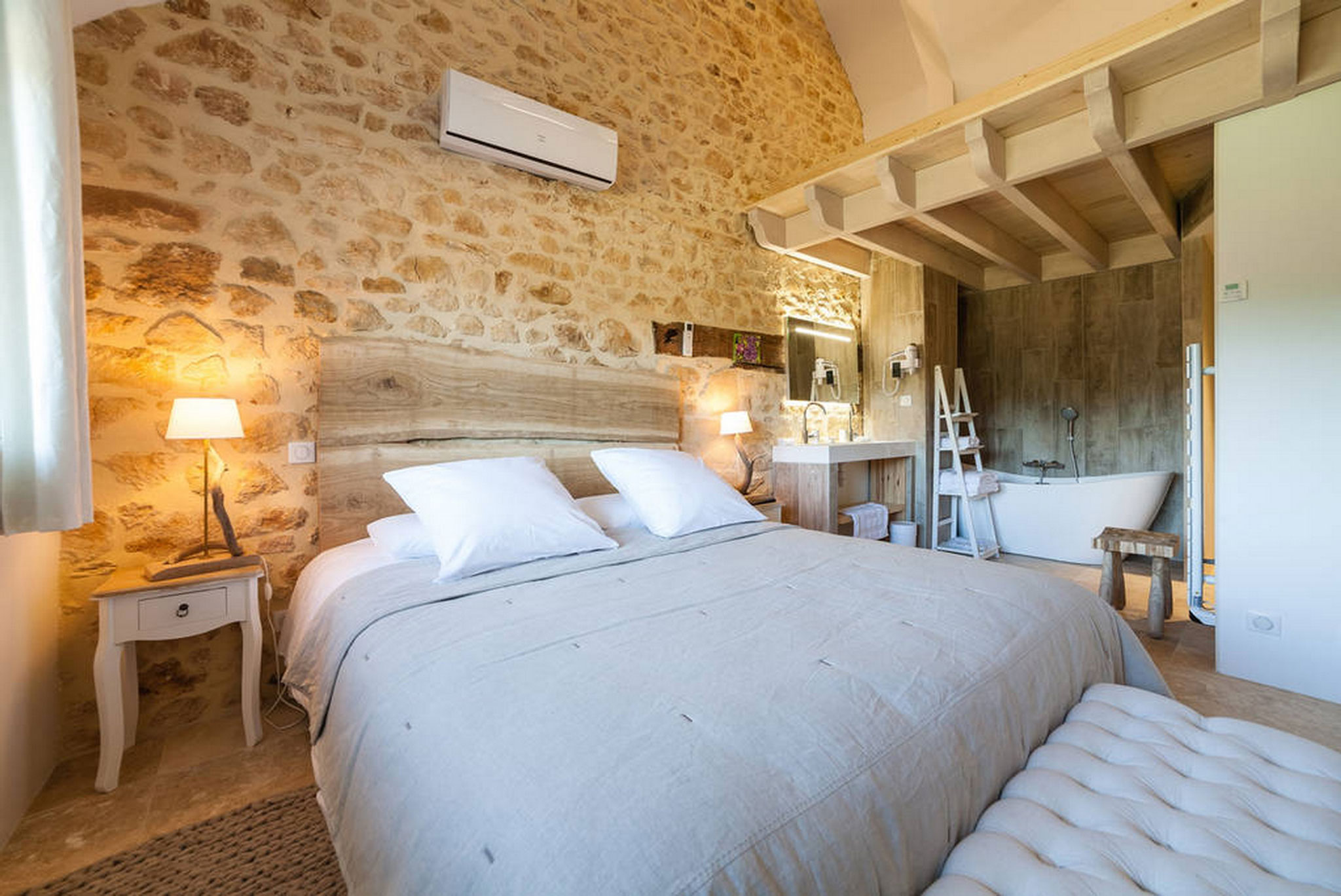 La chambre Rocamadour luxueuse et confortable est insonorisée et climatisée, orientée à l’ouest, elle donne sur les champs et la forêt alentour.